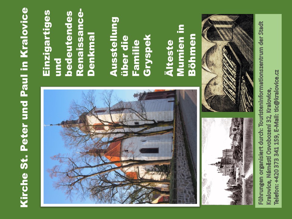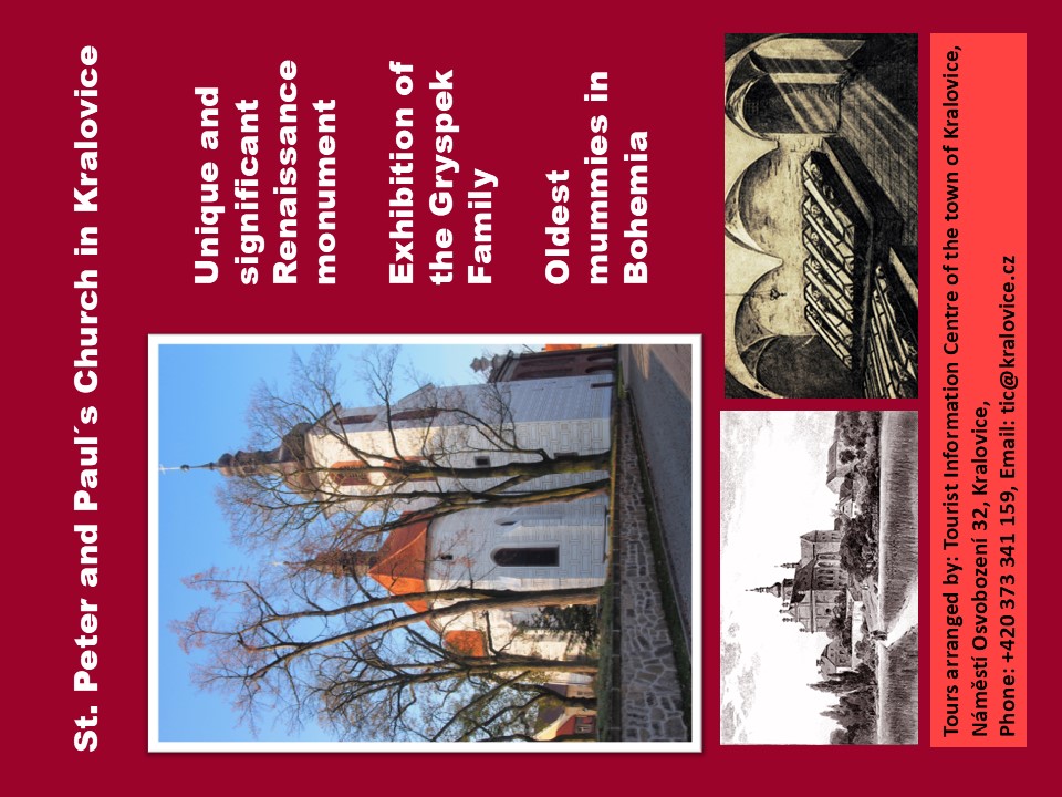 Der Besuch der Kirche St. Peter und Paul mit einer kommentierten Führung wird vom Touristischen Informationszentrum der Stadt Kralovice vermittelt,