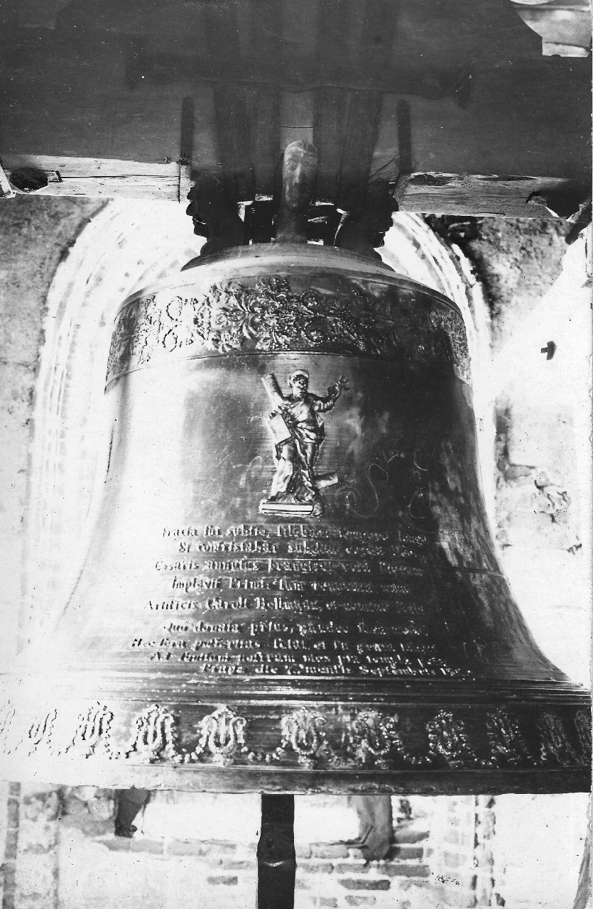 Dne 2. ledna 1917 odpoledne ve 3. hodiny. Dostavil se oddíl 9 mužů vedený c.k. šikovatelem p. Josefem Smolíkem jako stavitelem od od vojenského stavebního oddělení z Prahy jenž ohlásil se a legitimoval u podepsaného, který jej uvedl na věž a ukázal requirované zvony, jež se záznamem souhlasily.
